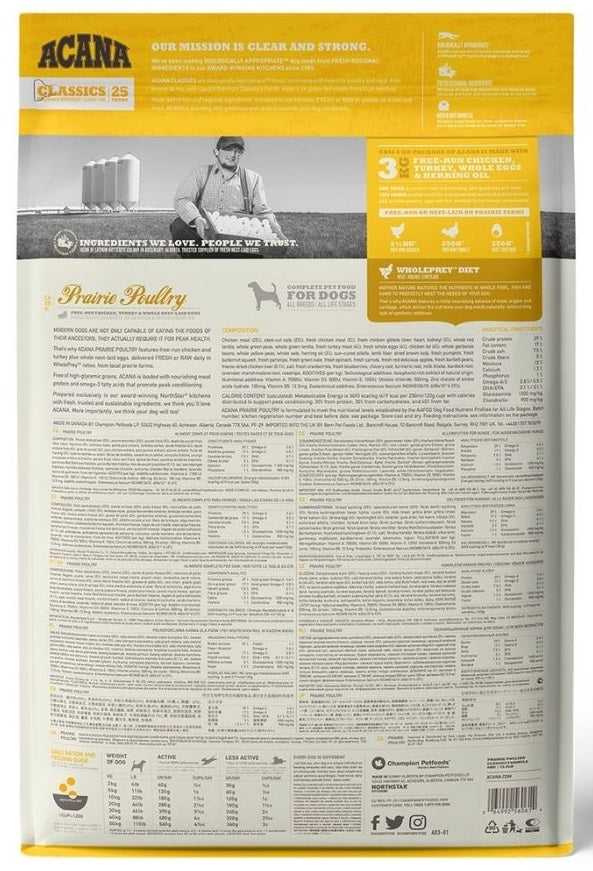 Acana Classic Prairie Poultry Dog Food | Free-Run Chicken, Turkey & Whole Nest-Laid Eggs