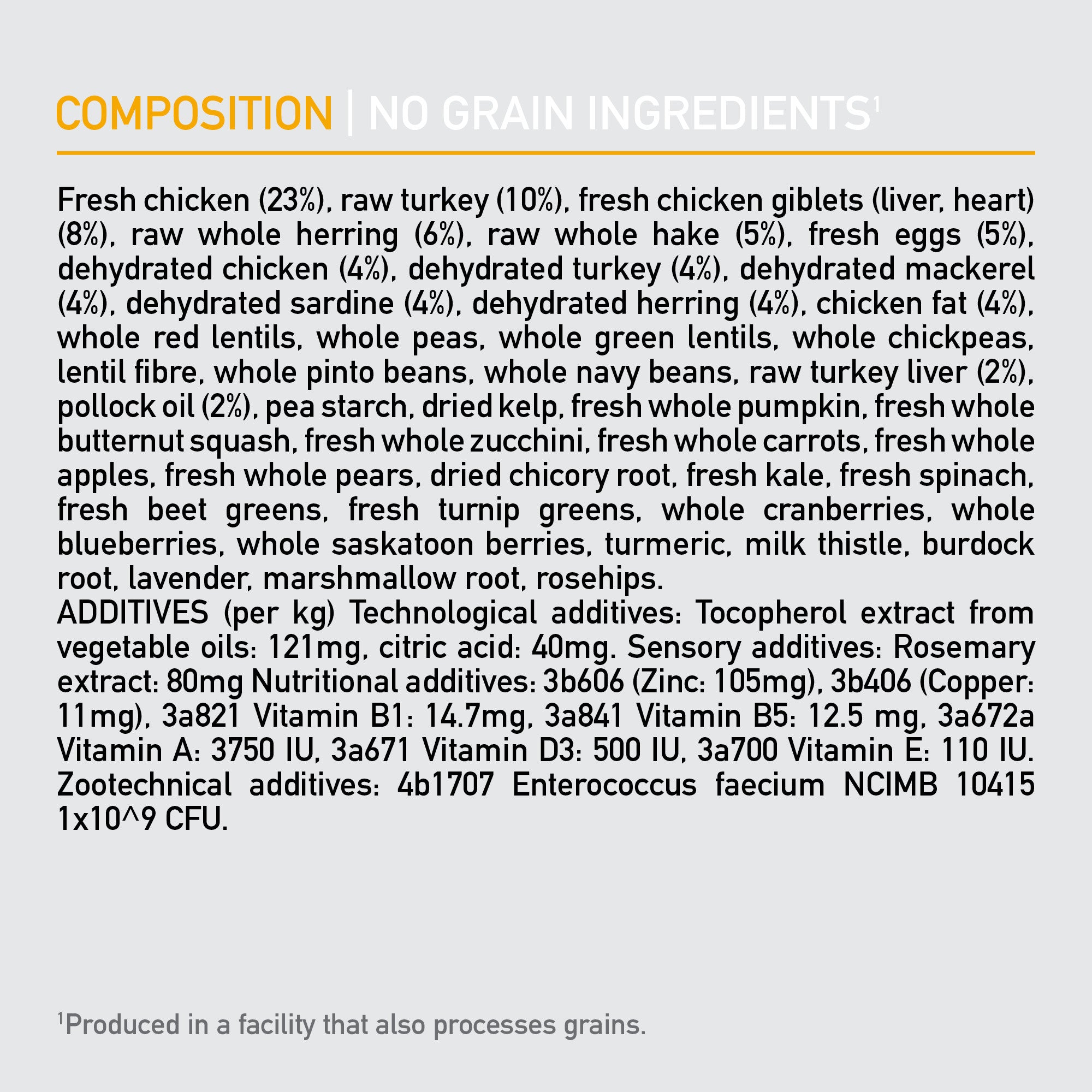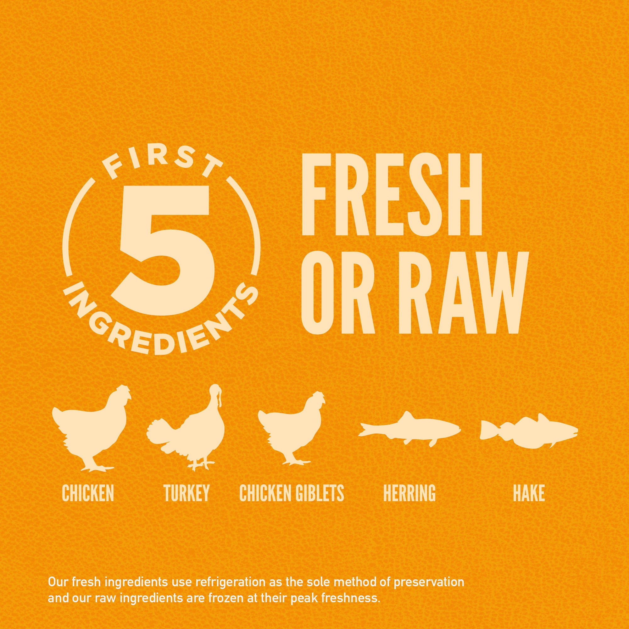 •The first 5 ingredients are fresh or raw3 poultry and fish ingredients.