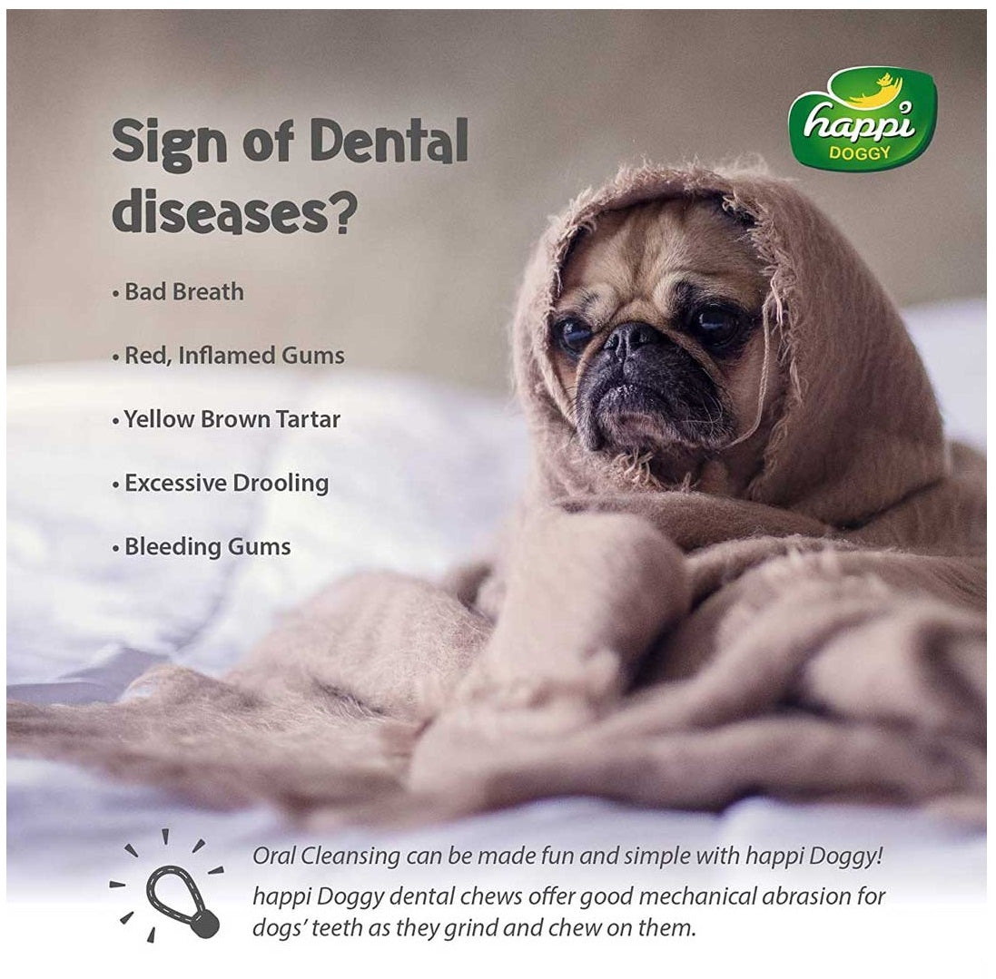 The Happi Doggy Dental Chew Care Pumpkin & Mountain Yam is specially made to counter digestive issues and problems with your dog's skin and coat. This range has an Active+ ingredient that is distilled from essential plant oils. It prevents plaque from building up, removes tartar stains and kills bacteria. These two key ingredients encourage the absorption of nutrients and bind loose stools. It strengthens digestive functioning and relieves fatigue.