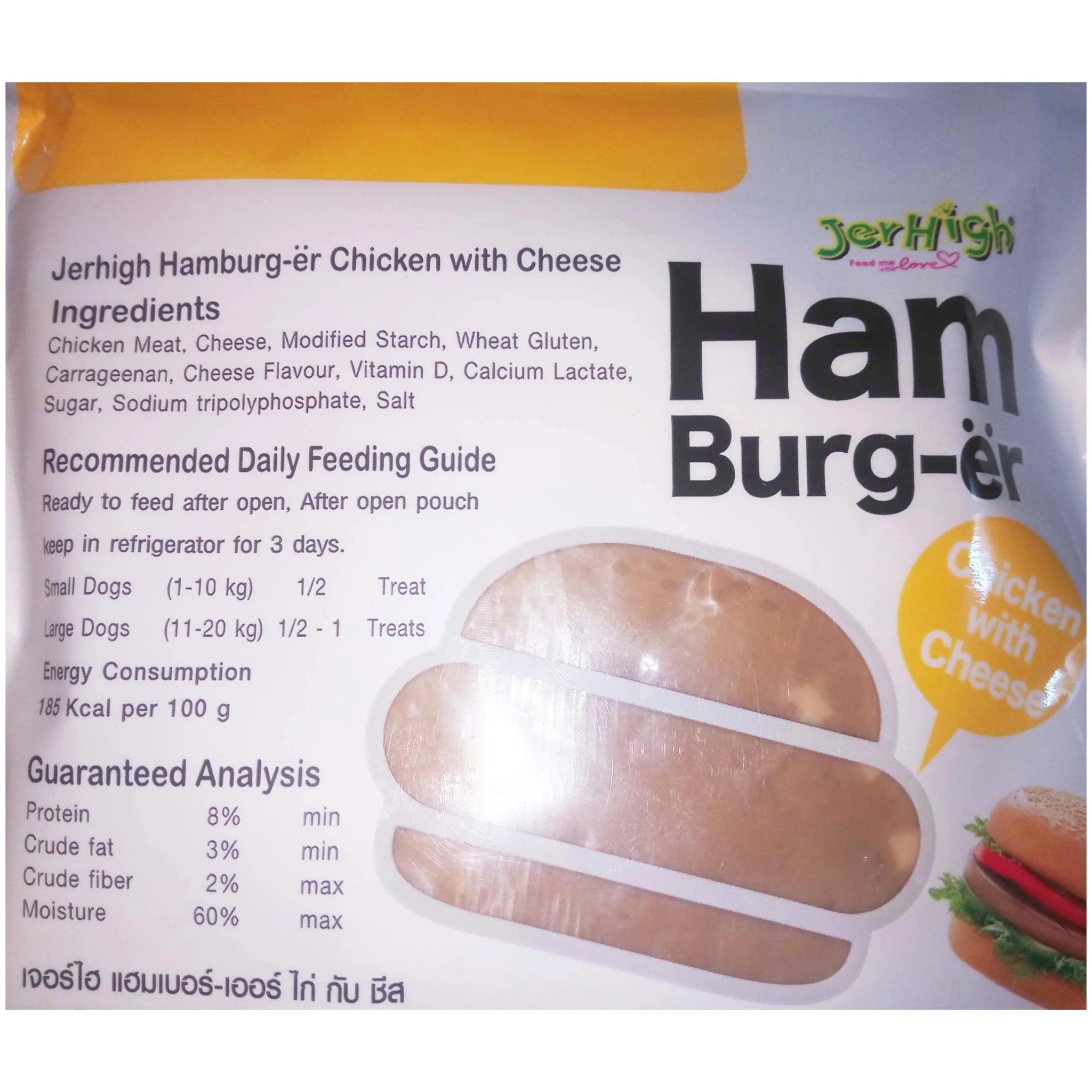 - JerHigh Hamburg-er Chicken with Cheese is a new high quality snack that made by real chicken and cheese.