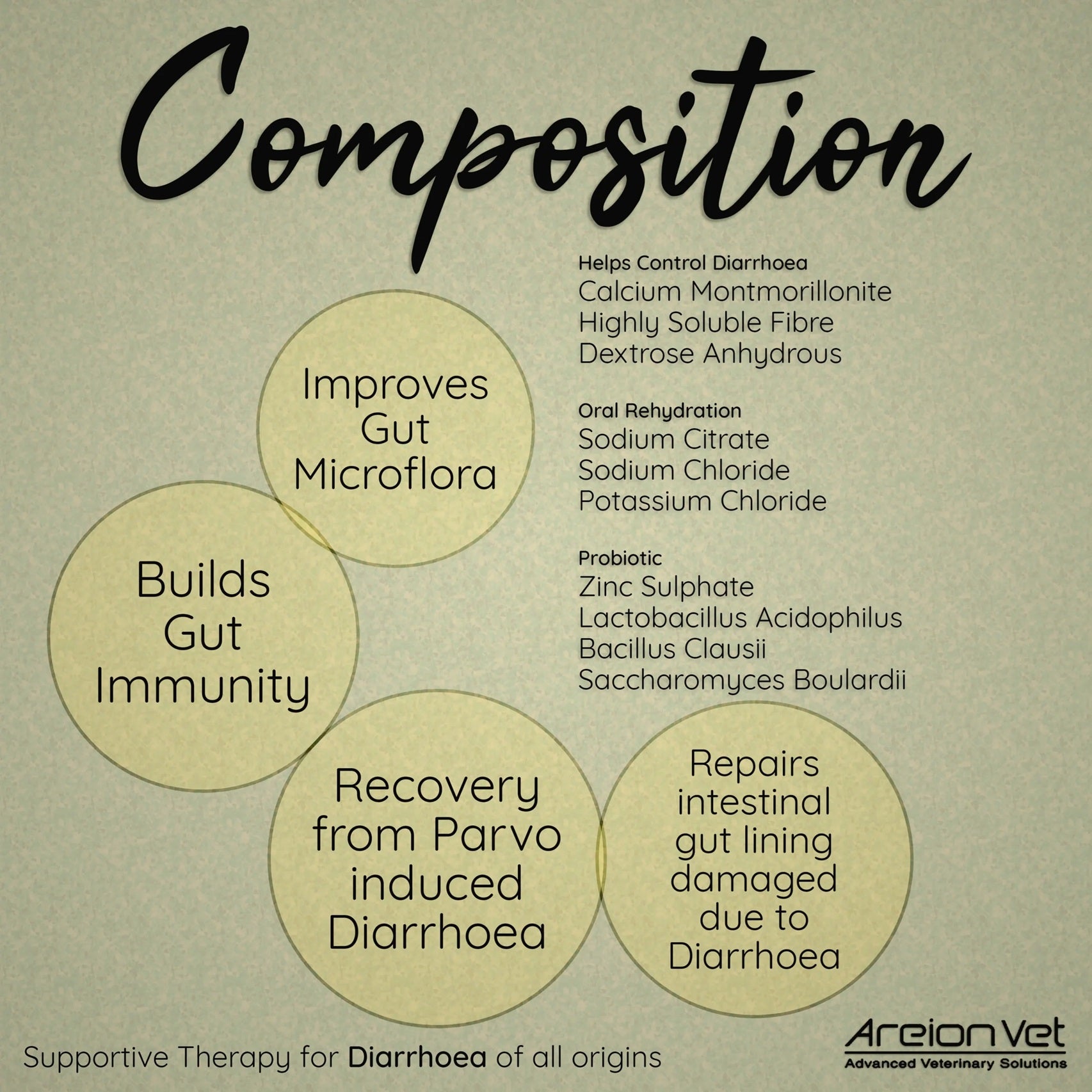 Areion Vet Dia Rest Gut Health Powder for Dogs & Cats - Triple Action Diarrhea Relief (40g)