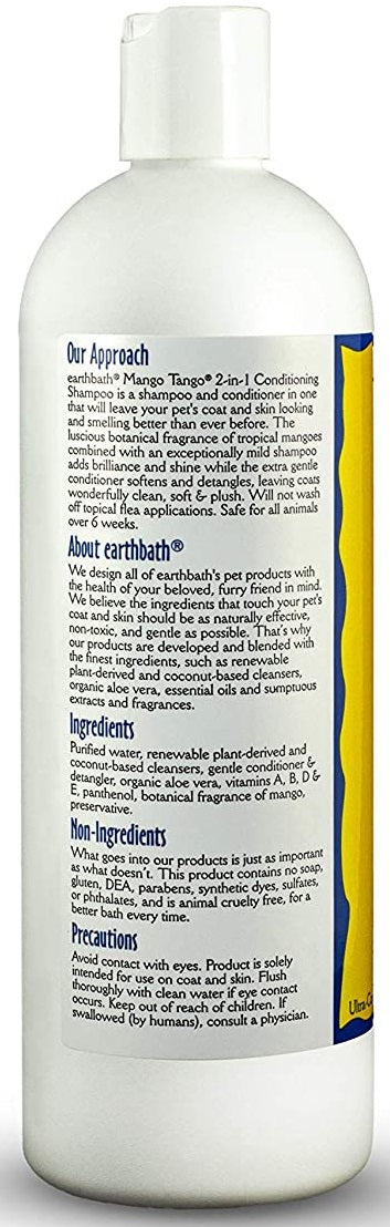 - Earthbath� Mango Tango� 2-in-1 Conditioning Shampoo is a shampoo and conditioner in one that will leave your pets coat and skin looking and smelling better than ever before.