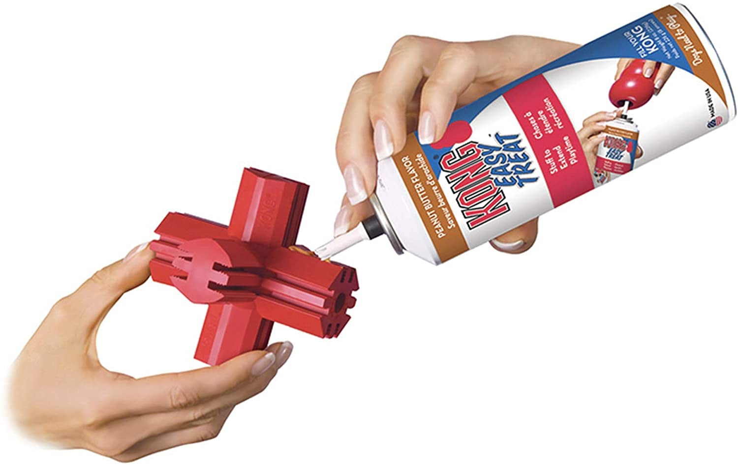 Insert your dog’s favorite treats or KONG paste into the grooves.