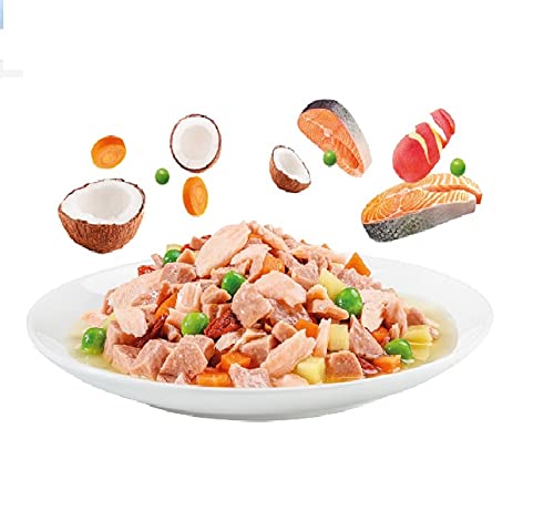 - Contains Salmon, Carrot, Sweet Potato and Green Peas