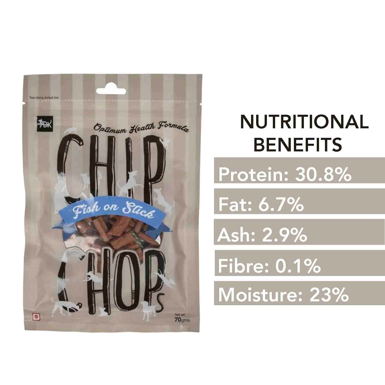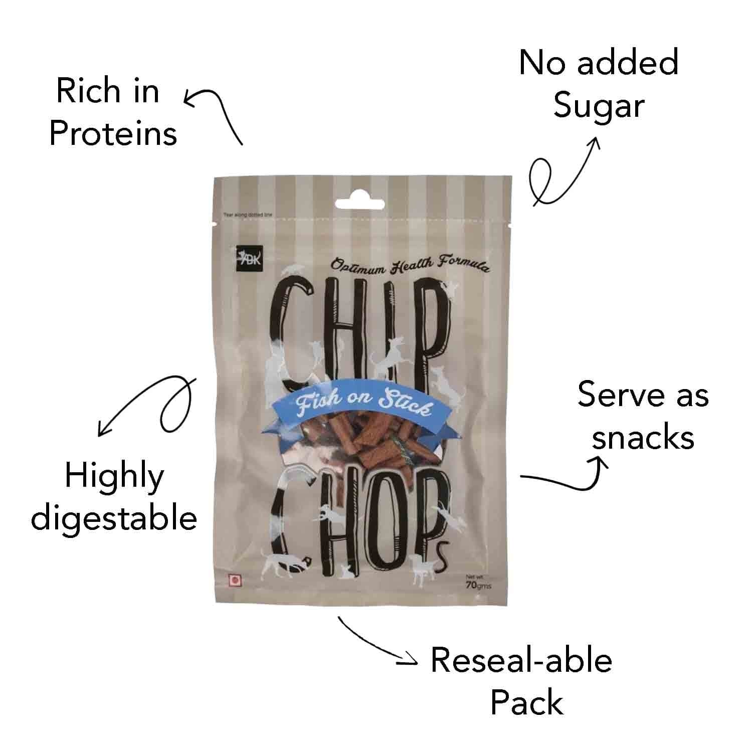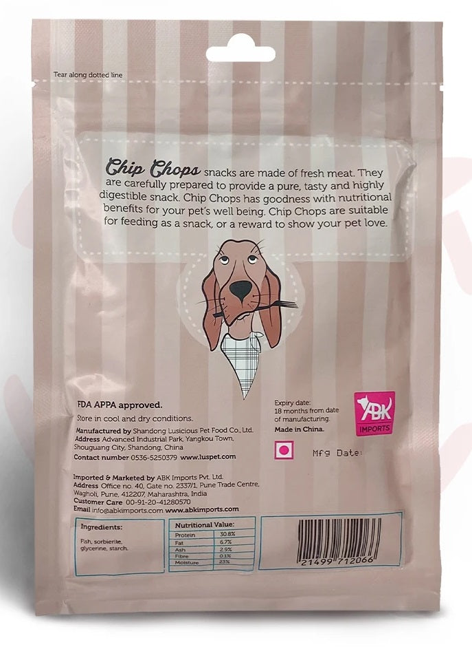 Chip Chops Fish On Stick Dog Treats are High-protein fish on stix dog treats made from fresh fish with stick-shaped design. FDA APPA approved for quality assurance.