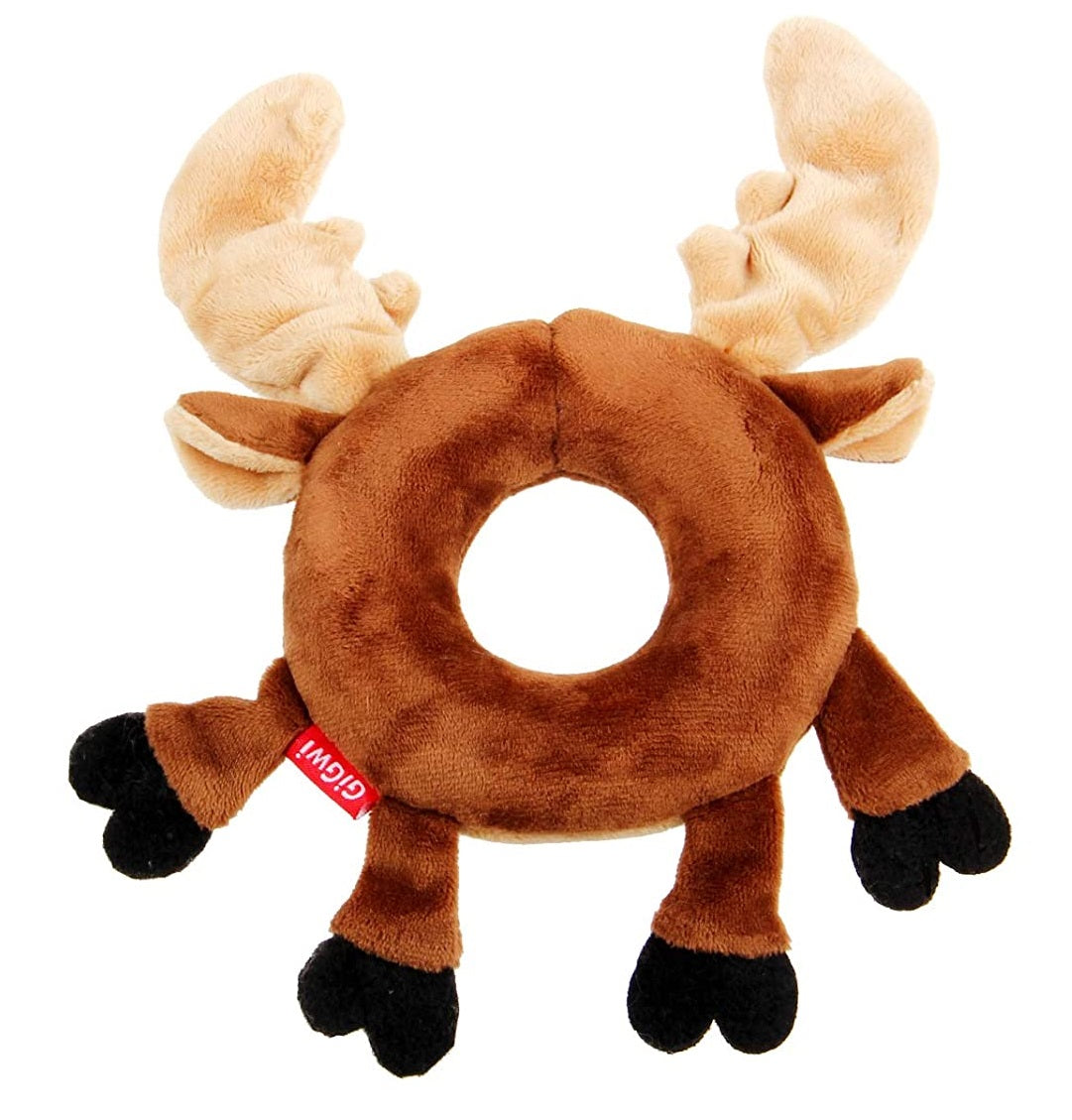 GiGwi Deer Plush Friendz with Foam Rubber Ring & Squeaker Dog Toy | Plush Ring Toy for Fetch, Tug & Snuggles