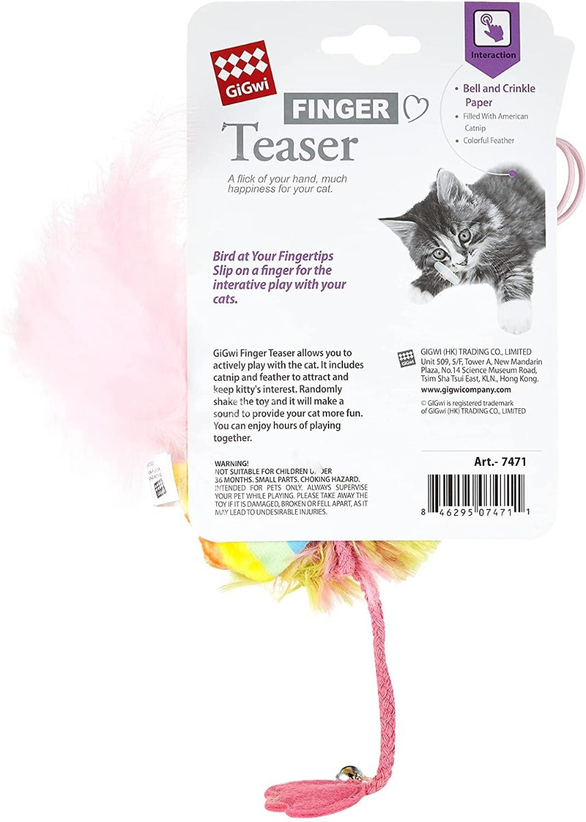 Ideal for kittens and adult cats, the GiGwi Finger Teaser helps reduce boredom, relieve stress, and strengthen the bond between you and your pet through interactive play sessions. Bird at Your Fingertips - Slip on a finger for interactive play with your cats.