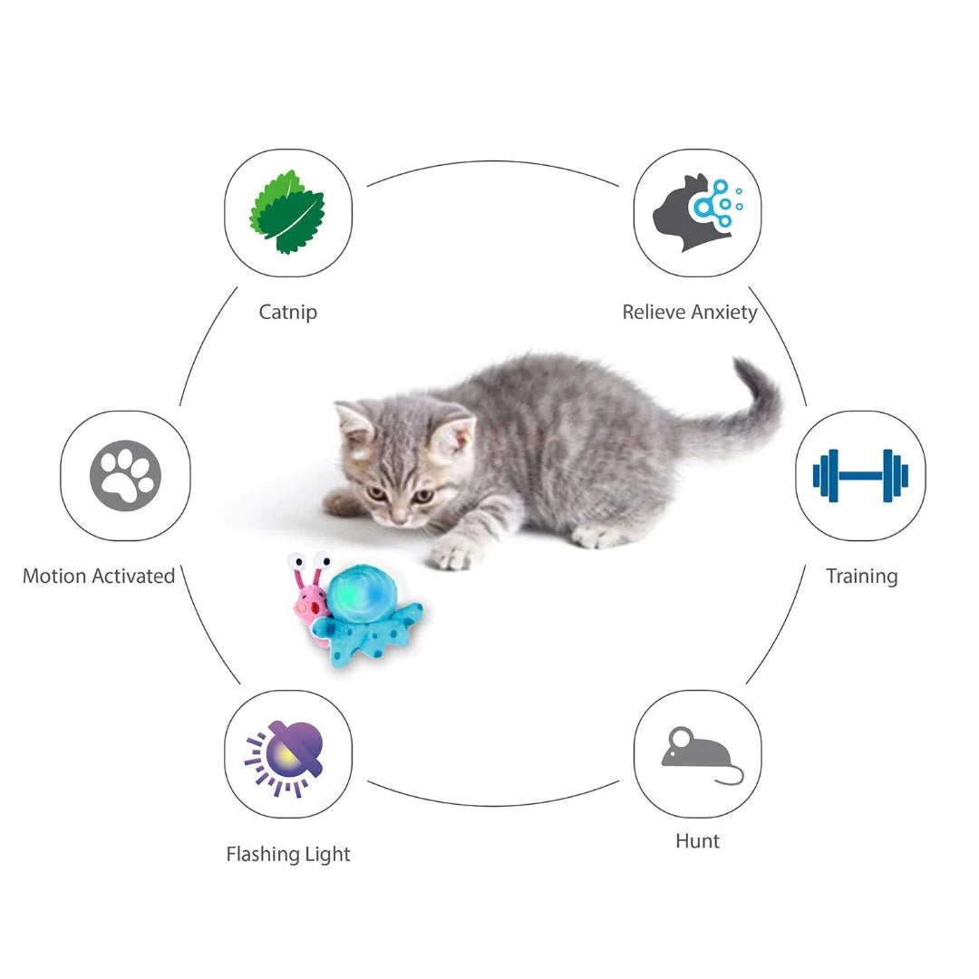 - Stimulates Natural Hunting Behavior: The glowing shell and cute snail shape mimic prey-like movement and visual cues