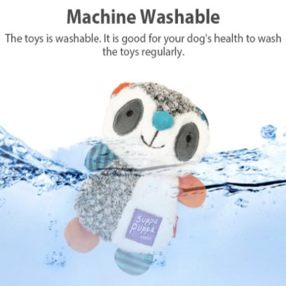 The GiGwi Suppa Puppa Raccoon Dog Toy is a soft, lovable-looking raccoon plush toy with a squeaker and crinkle paper inside to get your dog excited and keep them engaged. The combination of textured loop velvet and extra soft long plush fabric offers dogs something different when they cuddle the toy. It also has rope inside its body to make it easier for puppies to grip it with their teeth.