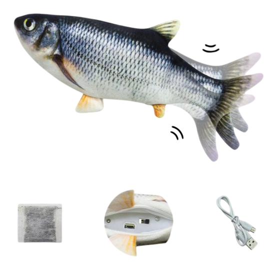 - The realistic fish design and the life-like flopping stimulate's your cat's hunting instincts.