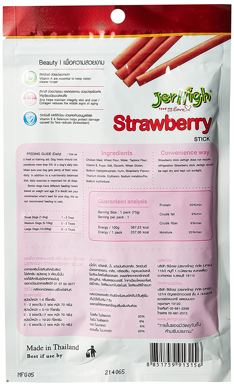 JerHigh Strawberry Stick – Real Chicken Meat Dog Treat are premium chicken sticks with beauty-enhancing vitamins for coat health, vision support and anti-aging benefits.