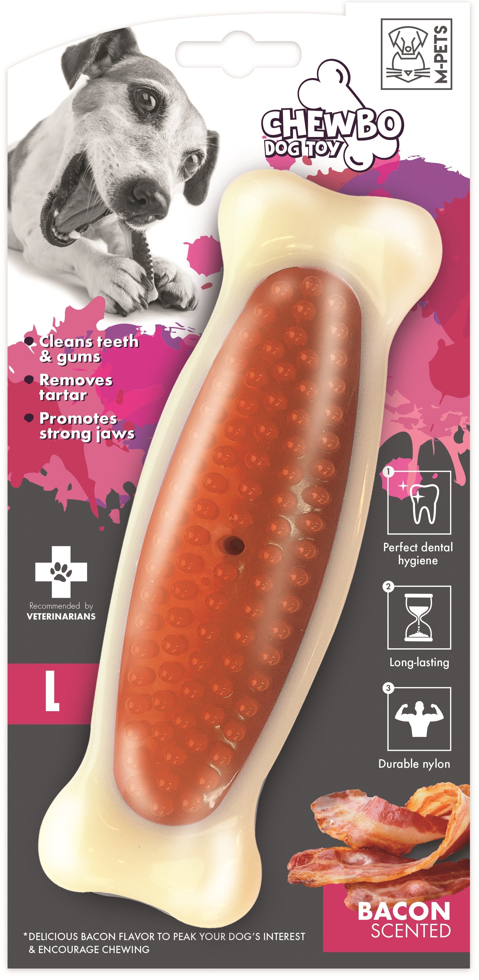 M-Pets Chewbo Bacon Scented Bone Dog Toy | Durable Nylon Chew Toy for Dental Health (M & L Sizes)