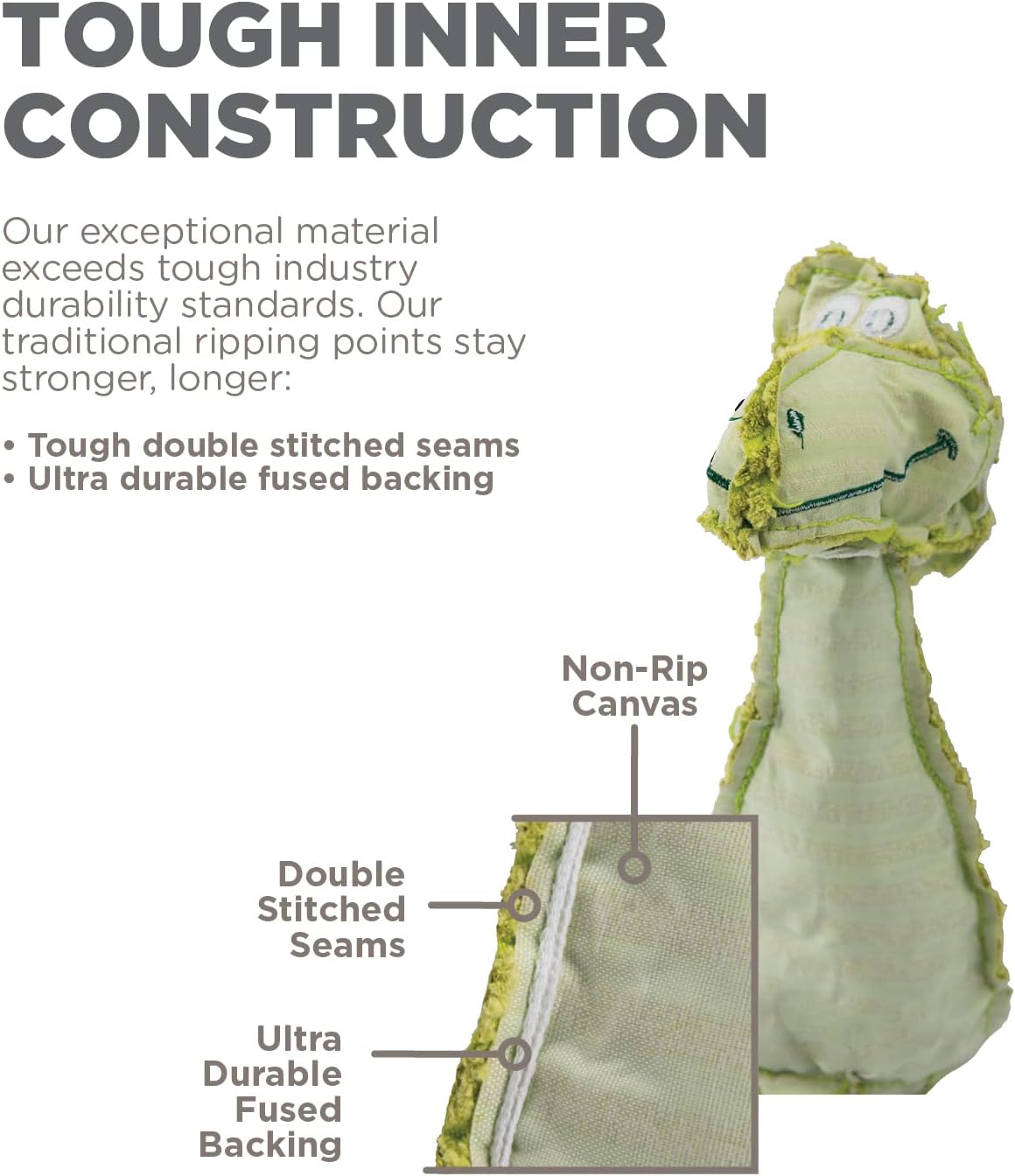 - K9 Tuff Guard Technology with Reinforced Seams: Extra stitching adds durability, helping the toy withstand daily rough play. This adorable dog toy is made with K9 Tuff Guard Technology that features reinforced non-rip seams, ultra-durable fused backing, and double stitched seams to ensure longer-lasting fun!