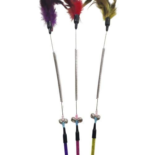 - Long stick attached with colorful feathers to catch your cat's eye.