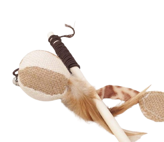Introducing the Smarty pet wooden wand stick with ball and bell feathers toy for your cat. It keeps your pet active and entertained which in turn helps her improve her behavioral issues.