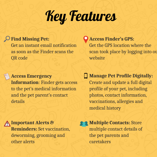 - Digital Profile Management: Manage your pet's profile online - update contact details, set vaccination alerts, deworming reminders, and other pet-related notifications