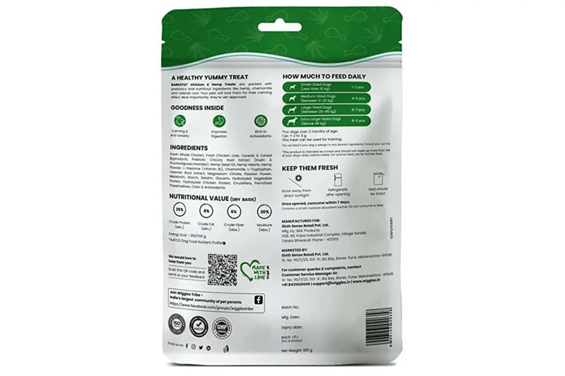 Wiggles Barkstix Chicken & Hemp – Healthy Dog Treats is a Premium functional dog treat with chicken and hemp in stick form. Calming treats with prebiotics for stress relief, digestion, and antioxidant support.