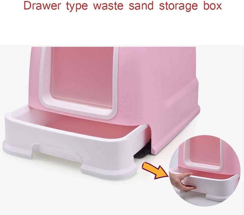 Its drawer-style waste tray allows quick cleaning—simply pull out the tray, dispose of the litter, and slide it back in. Made with durable, pet-safe plastic, this litter box offers long-lasting use and a modern aesthetic in pastel colors.