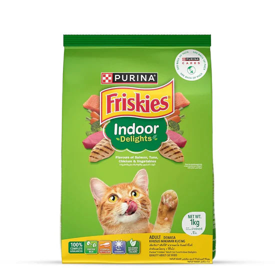 Purina Friskies Indoor Delights offers a tasty and nutritious meal tailored to indoor cats. With multiple protein flavours and essential nutrients, it supports muscle health, immunity, and overall well-being. The crunchy kibble makes every mealtime enjoyable while delivering complete daily nutrition.