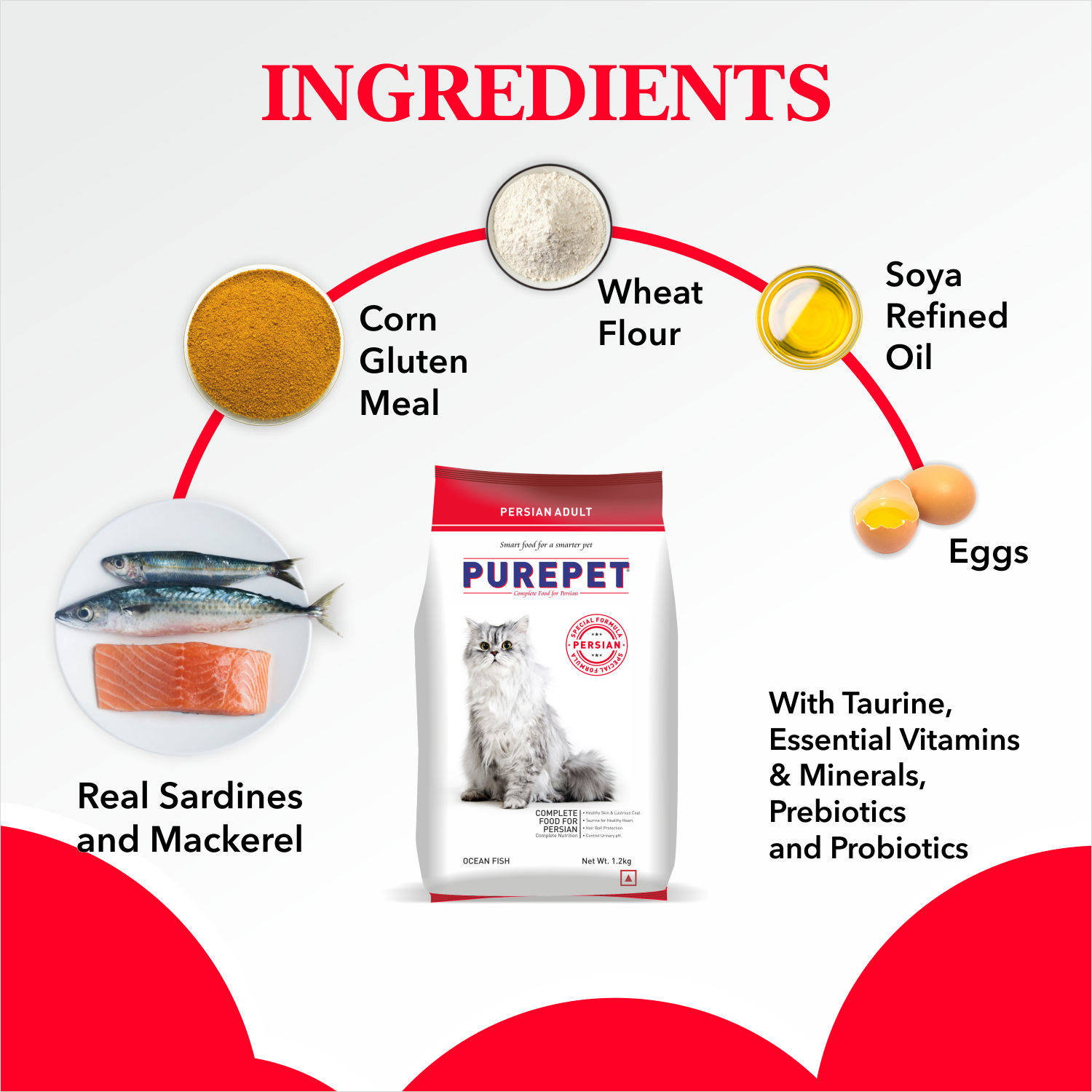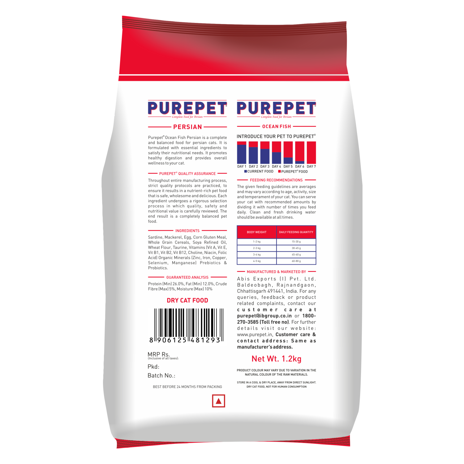 Purepet Ocean Fish Persian Adult Cat Dry Food Is a nutritious food that is made of ocean fish. This formulation contains key vitamins which help keep the coat beautiful and lustrous. The blend of Organic Minerals along with the essential ingredients help to control Urinary pH. Prebiotics and Probiotics help improve the digestive system and protect from hairball formation which is important for Persian Cats. The digestive system, teeth and jaws of cats are specifically adapted and suited to eat meat. Fish consists of quality source protein, which is necessary in the cat's diet to prevent from any kind of damage in the body. This delicious food is formulated with the same balance of nutrients providing all the health benefits to your persian cat.
