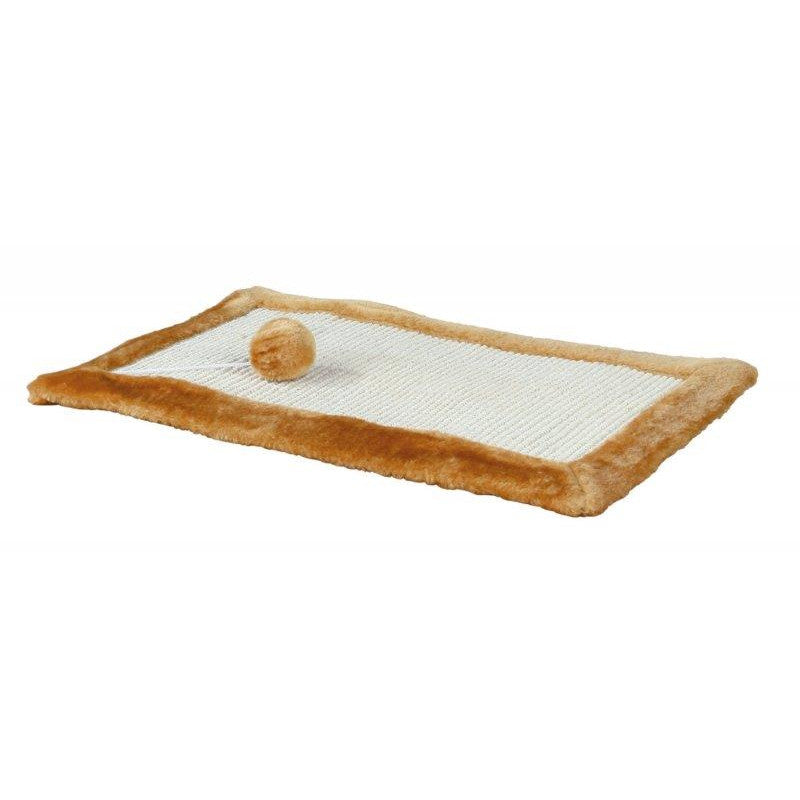 Presenting the Trixie scratching mat with plush border. Trixie Scratching Mat For Cats provides sufficient resistance to really dig in for a satisfying scratch session. Catnip toy on string entices cat. It provides a surface rug that deters cats from scratching your rugs and carpets. Can be used hanging or lying.