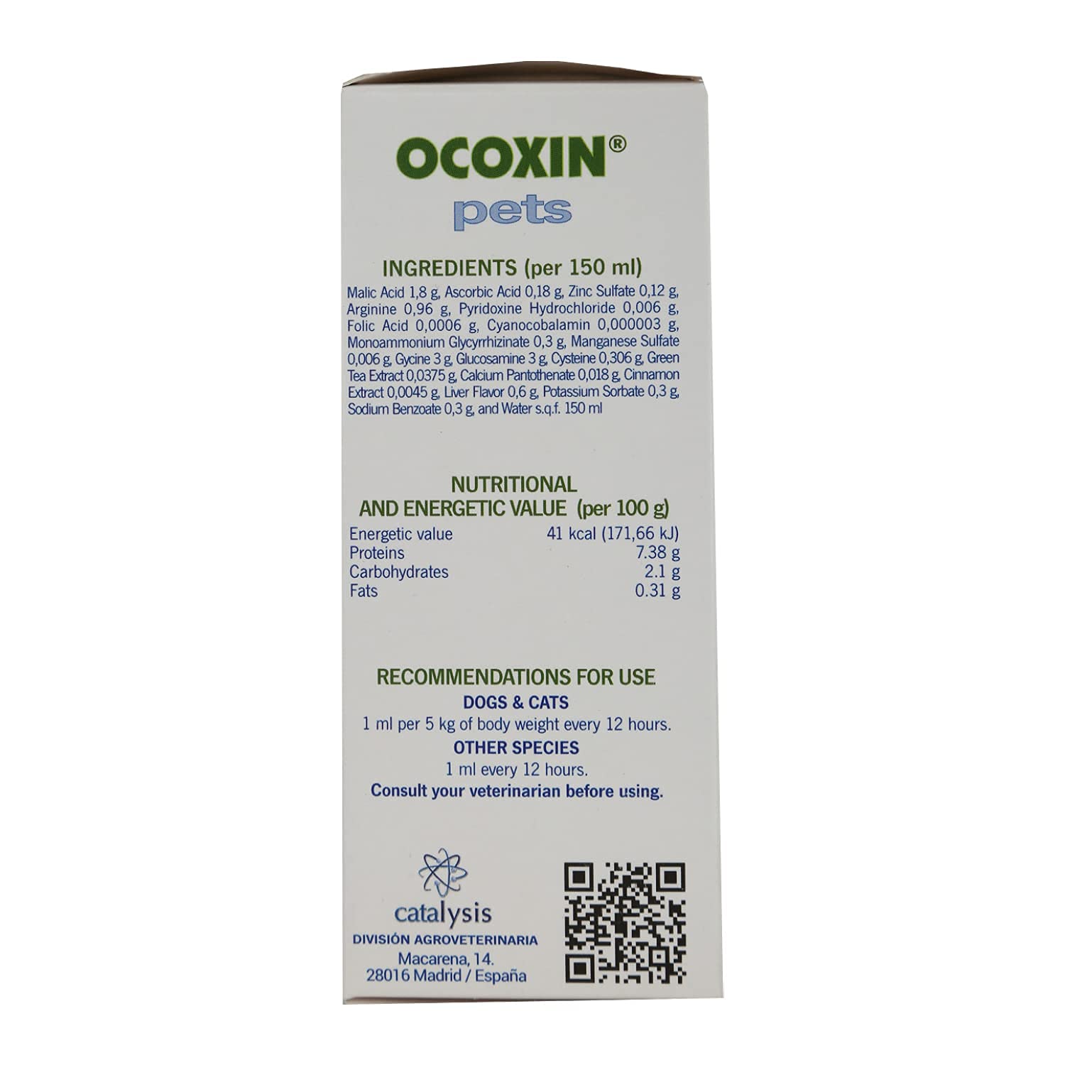 - Dogs & Cats: 1ml per 5kg body weight every 12 hours