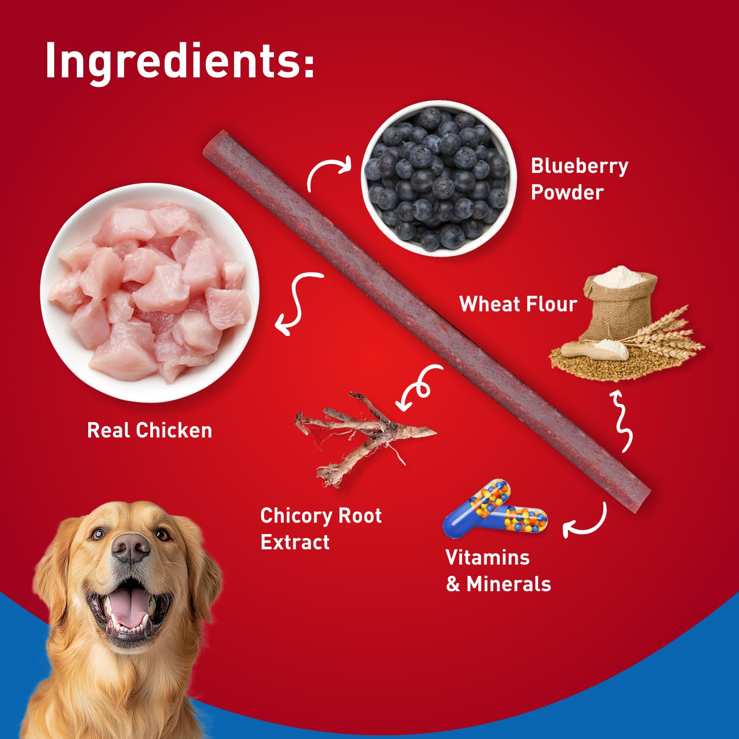 Drools Chicken Sticks Dog Treats – Blueberry Flavour features premium real chicken meat with wholesome blueberry flavoring in convenient stick format for dogs of all sizes.