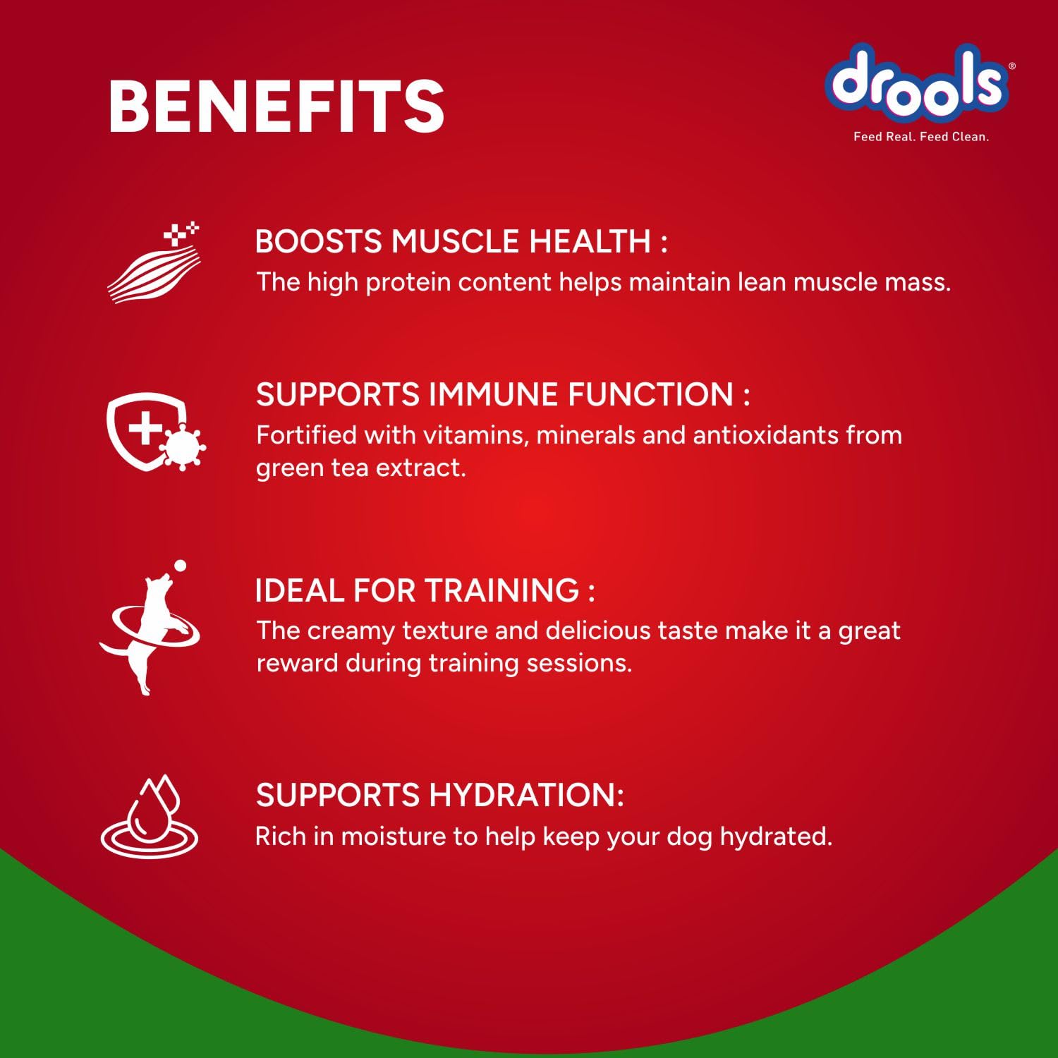 Drools Creamy Lickable Chicken & Spinach Dog Treats – Buy 4 Get 1 Free features premium lickable formula with real chicken meat, liver, and spinach powder in convenient single-serve pouches for dogs.