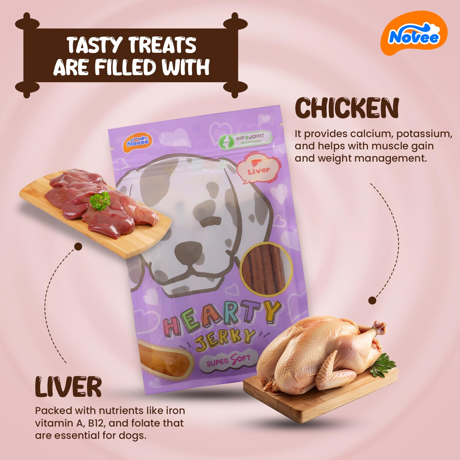 NOVEE : Liver Jerky Treats with Glucosamine - Training Dog Treats