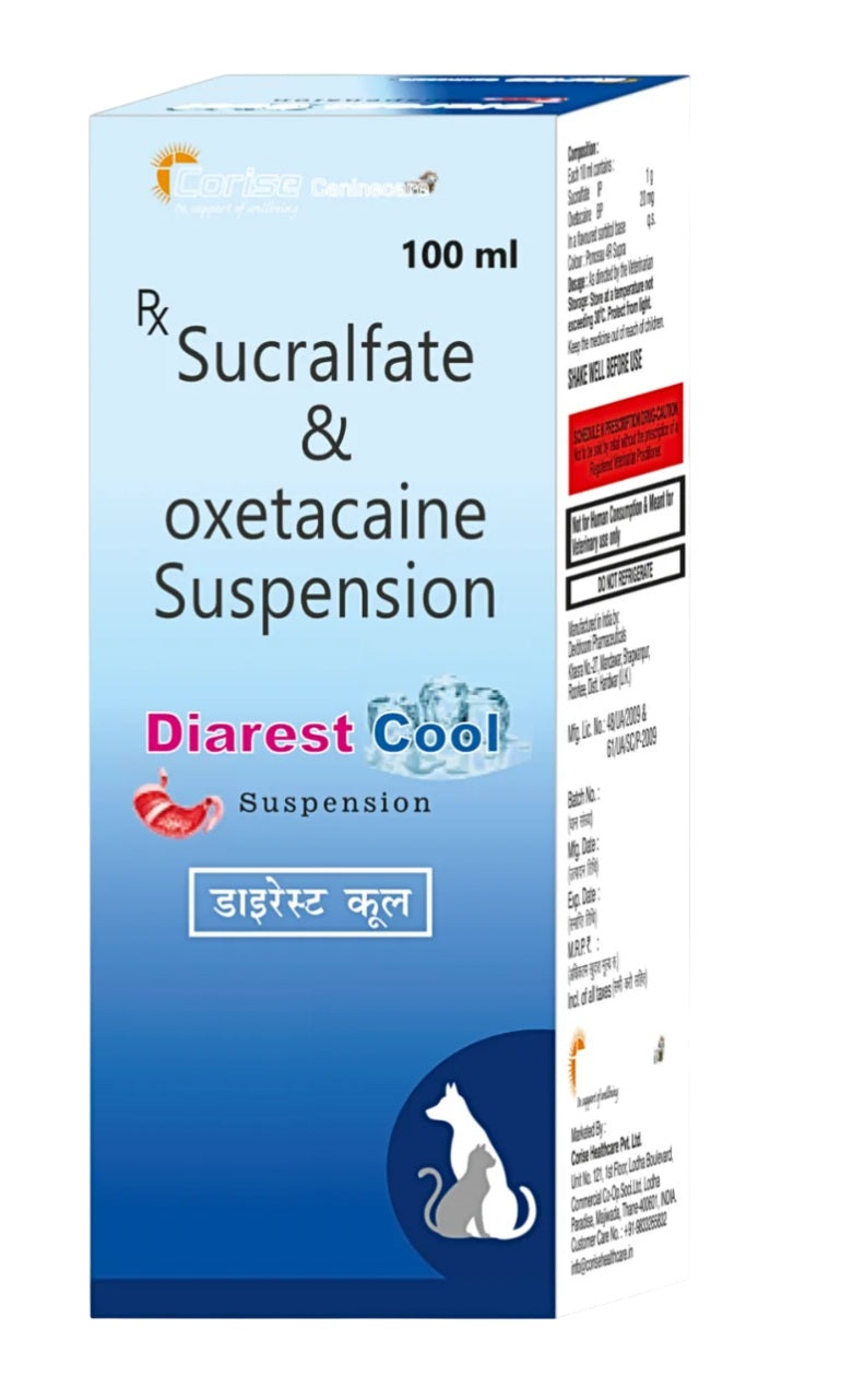Support your pet’s digestive comfort with Corise Diarest Cool Suspension for Dogs & Cats, a veterinary-formulated gastric care solution containing Sucralfate and Oxetacaine. This advanced suspension is designed to help manage gastric irritation, acidity, ulcers, and stomach discomfort in both dogs and cats.