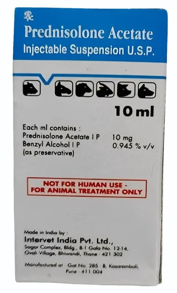 Prednisolone Acetate Injectable Suspension U.S.P. | 10mg/ml | Veterinary Corticosteroid for Dogs, Cats, Horses & Livestock