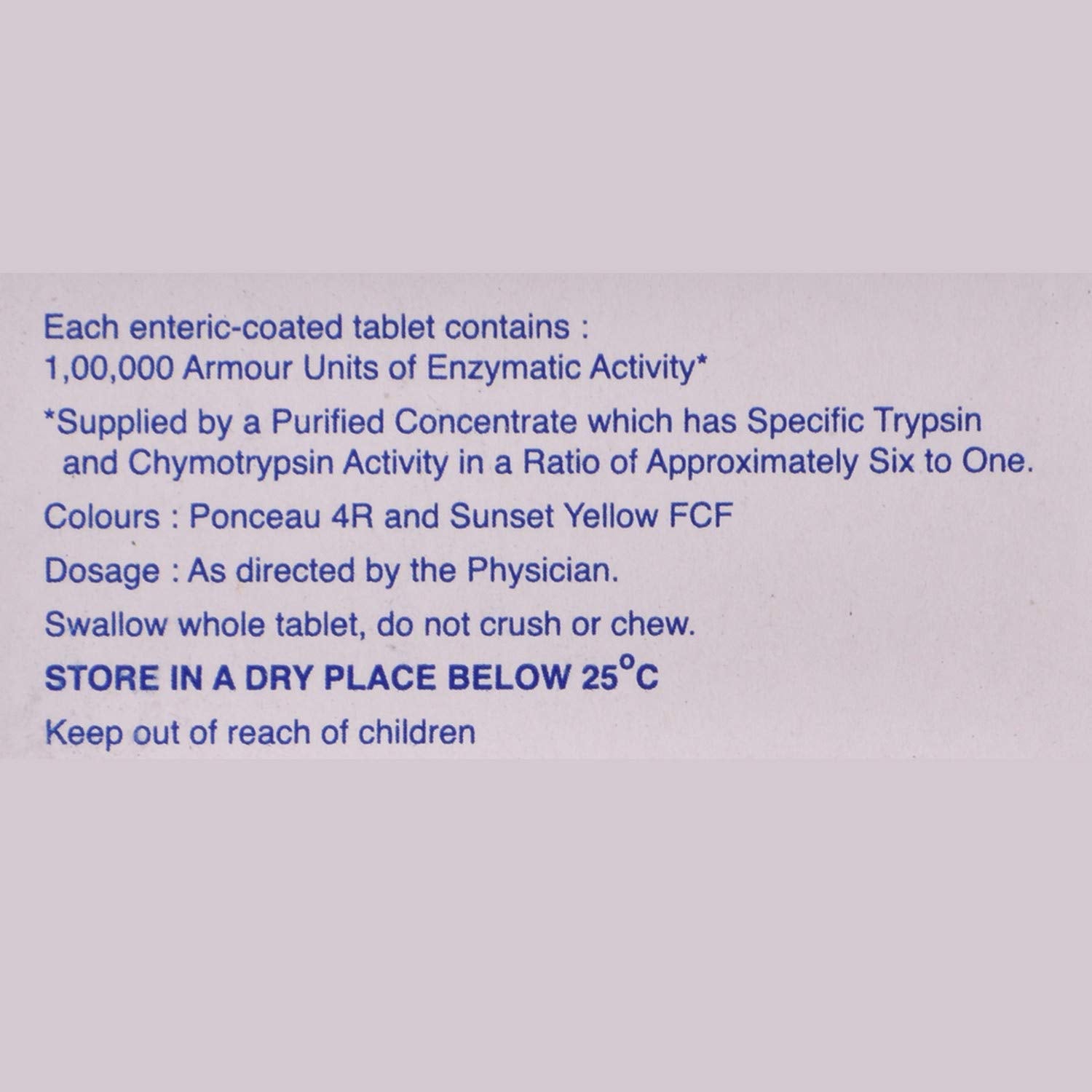 - Active Ingredients: Trypsin-Chymotrypsin (1,00,000 Armour Units)
