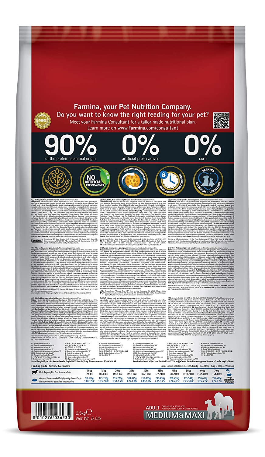 - This food has kibble size specially made to suit the large jaws of medium and maxi breeds.Food Type: Dry dog food Suitable for adult dogs of medium and maxi breeds Chicken, Pomegranate and Pumpkin Grain-free and Gluten-free Free from Genetically Modified Organisms (GMO) No artificial preservatives AAFCO approved Consult a vet before altering your pet's diet Always have fresh water available for your pet Never exceed recommended feeding quantities unless prescribed by a vet.