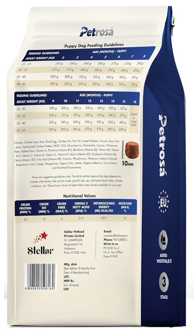 Petrosa Puppy Dog Food For Large Breed | Complete Nutrition for Growing Puppies (Stage 3)