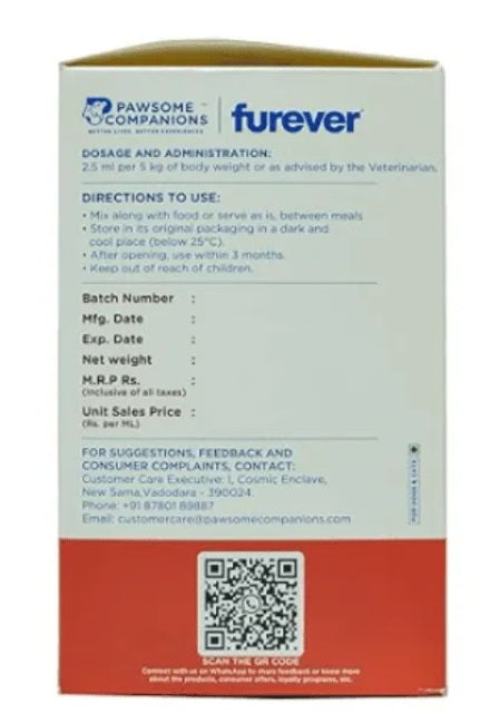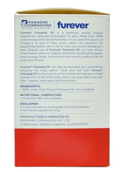 Pawsome Companions Furever Flaxseed Oil is a premium 100% virgin cold-pressed dietary supplement available in 500ml bottles for cats and dogs. This natural omega-rich oil provides essential fatty acids for skin health, coat shine, joint mobility, and overall wellness enhancement.
