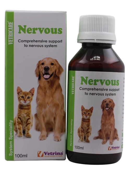 Nervous by Vetrina is a specialized liquid supplement designed to provide comprehensive support to the nervous system in dogs and cats. This advanced formula combines essential B-vitamins, vitamin C, and herbal extracts to support neurological health, reduce stress, and manage anxiety-related behaviors.Key Benefits