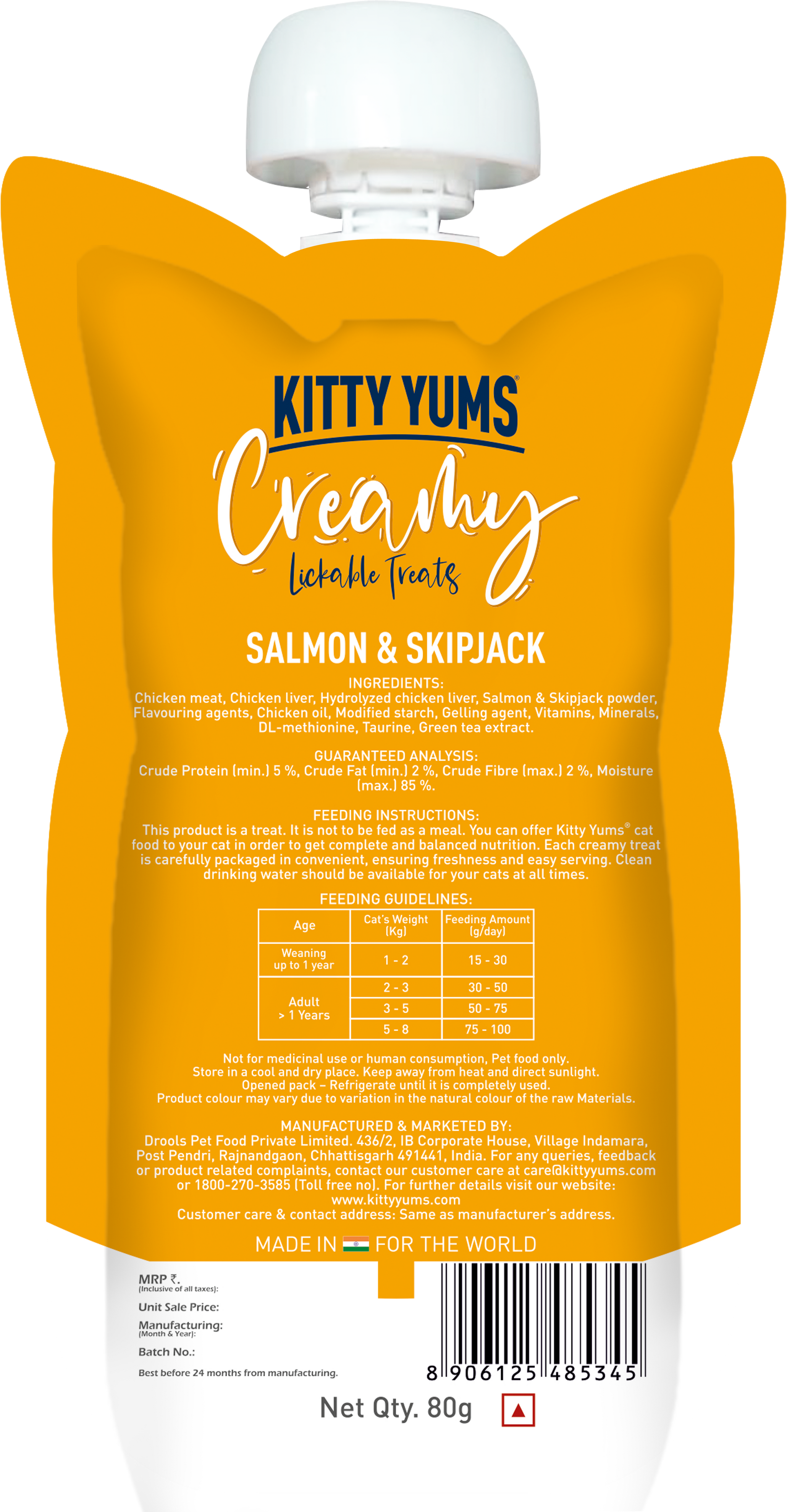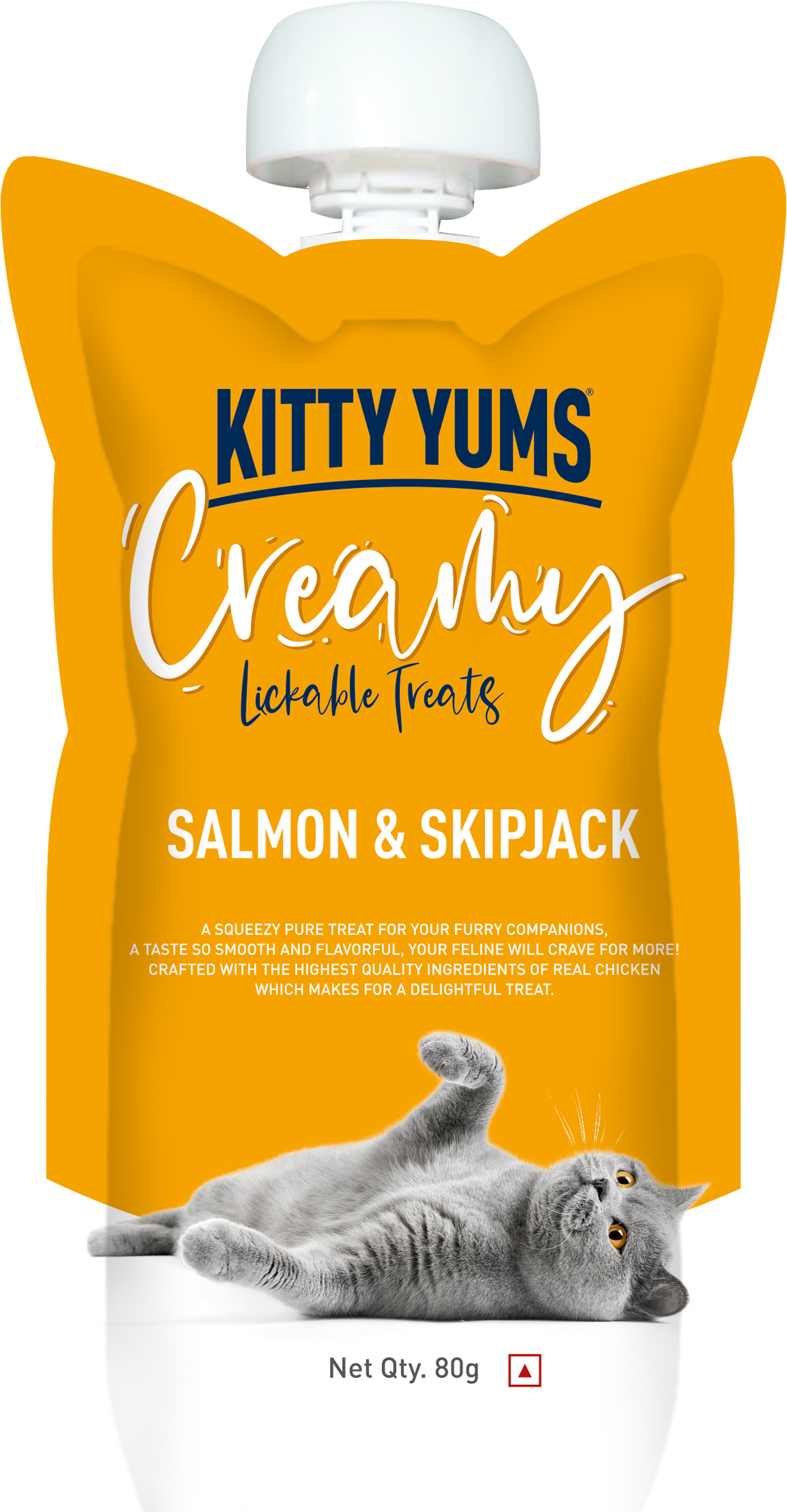 Kitty Yums : Creamy Lickable Cat Treat – Salmon & Skipjack Squeeze Tube