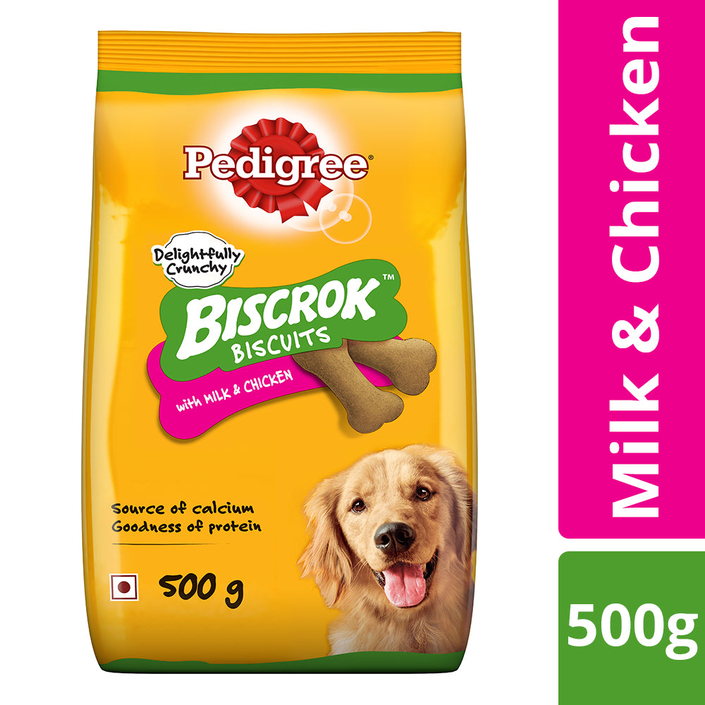 Pedigree Biscrok Dog Biscuits – Milk & Chicken Flavour are Crunchy nutritious dog biscuits made with milk and chicken for daily training sessions. Family pack size is perfect for regular feeding and consistent rewards.