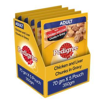 Pedigree Chicken & Liver Chunks Flavour In Gravy - Adult (5 Pouch x 70 Gms) - New Offer
