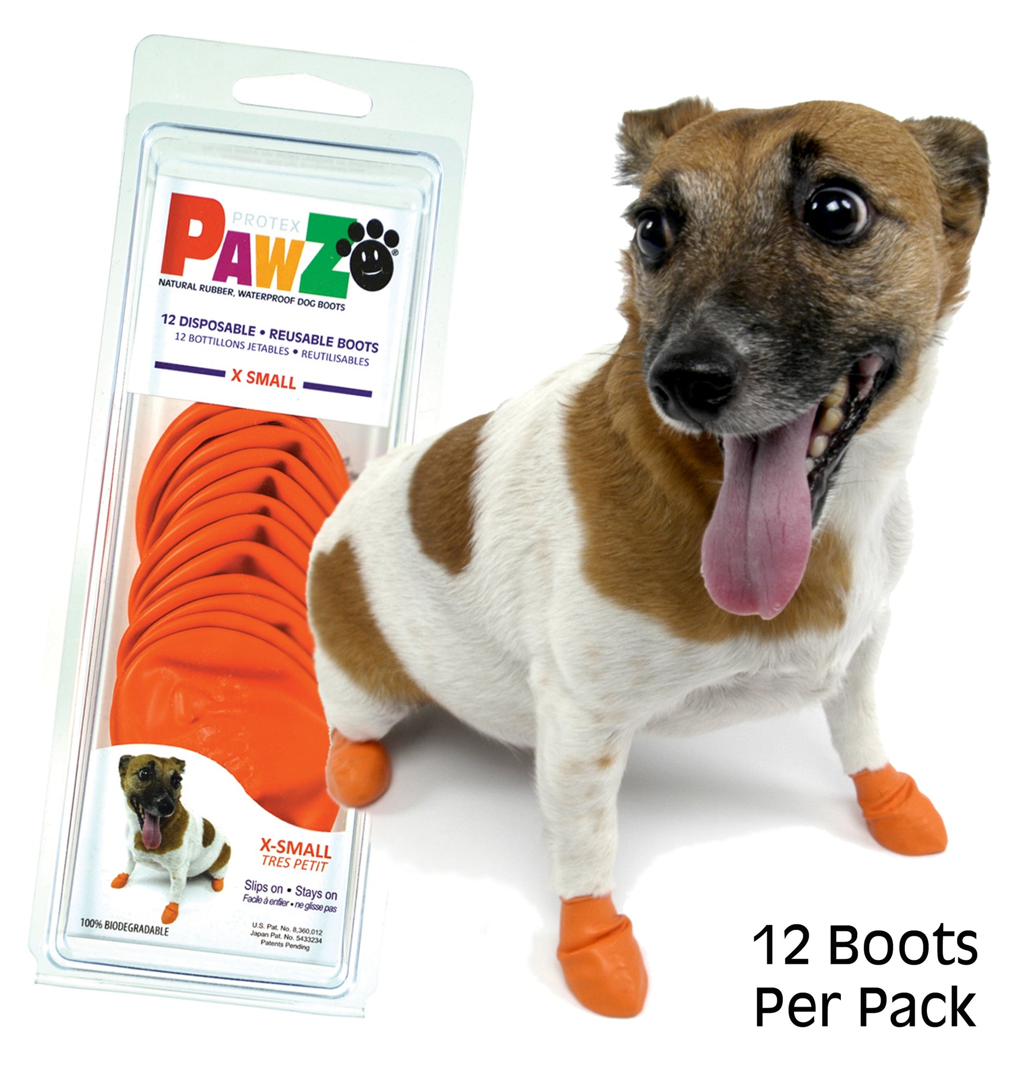 - PawZ Rubber Dog Boots come in 7 sizes, to perfectly fit your dogs paw. Check our sizing chart or reach out to us if you have any questions about which size would work best for your pup! PawZ dog paw protection is the perfect all weather, weatherproof dog bootie for winter snow, heavy rain, pavement heat and muddy terrain.