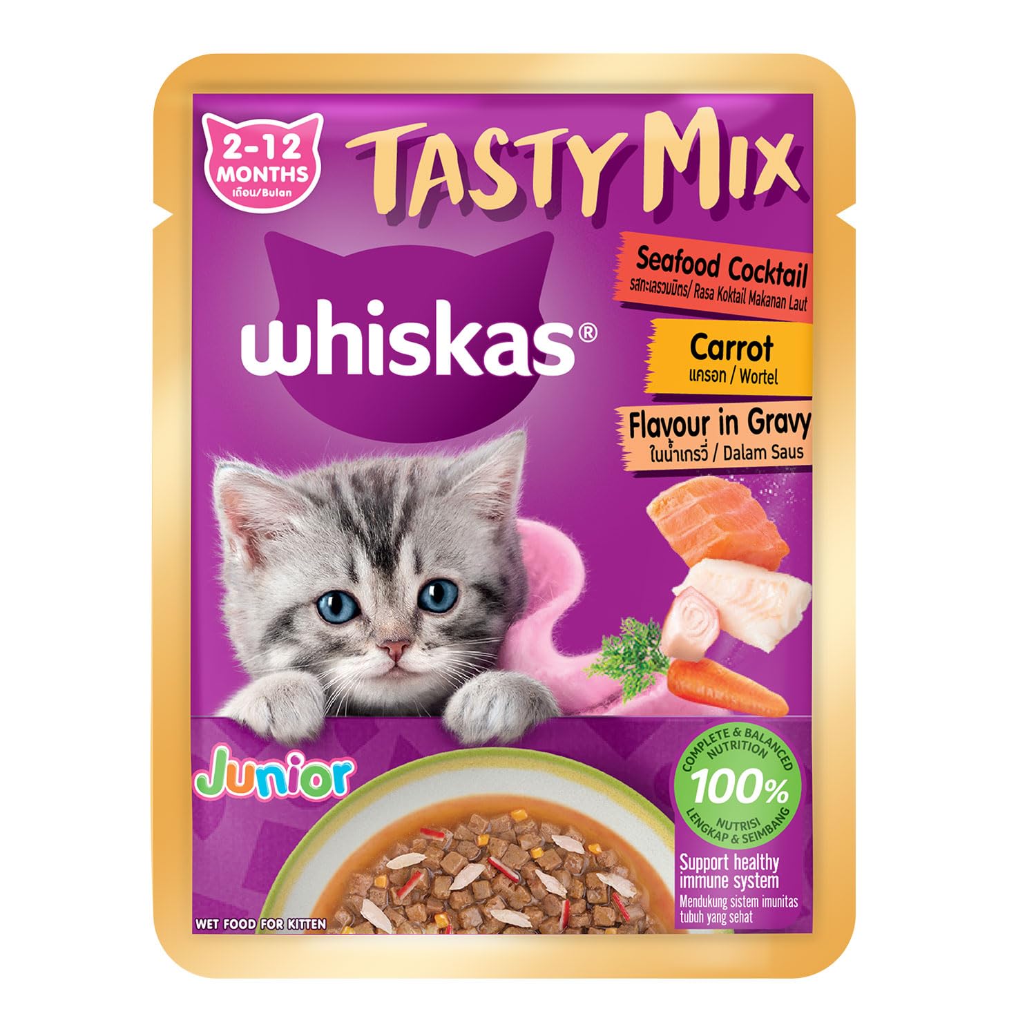 Whiskas Junior Tasty Mix Seafood Cocktail Carrot Flavour In Gravy Cat Pouch